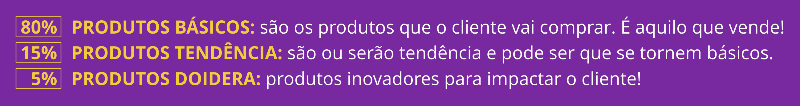 Segundo ele, o mix de produtos deve seguir a Regra 80/15/5: