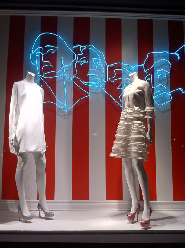Para se inspirar, veja como ficou linda esta vitrine, no caso com bandeiras americanas, da Bergdorf Goodman.